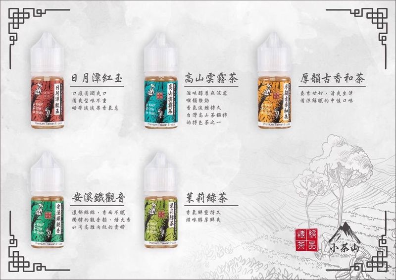 本系列主打茶香融合定位 🍃,結合八款經典茶系風味元素,強調清爽層次與平衡口感。相較於偏甜型水果煙油,茶香系列更偏向自然韻味與細膩層次表現,適合喜歡低甜度與茶韻口感的使用者。